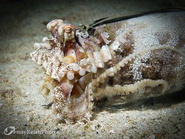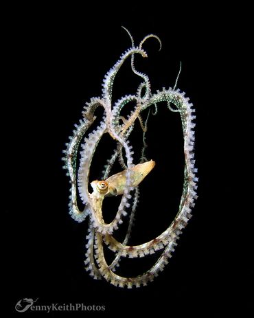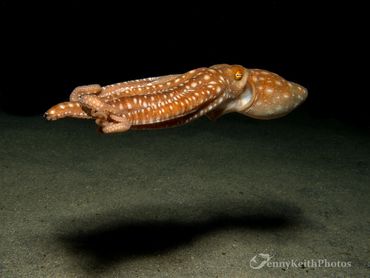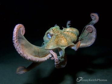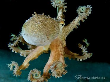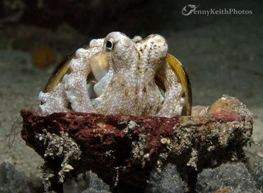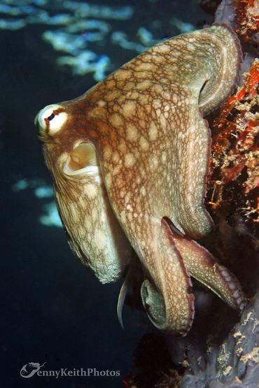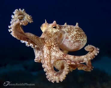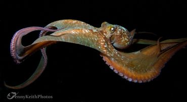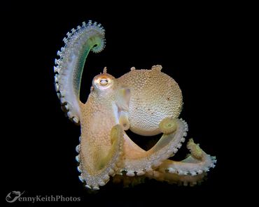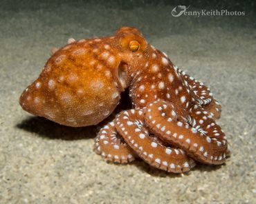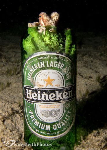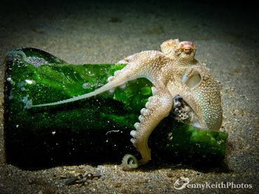 In the past decade, I've identified 6 different species of Octopuses here in St. Croix; The Caribbean reef, brown-stripe, Atlantic long arm, The Caribbean two-spot, white-spotted and the common octopus. Here in St Croix, it is almost guaranteed to have an encounter on a night pier dive. They are elusive creatures that hide in a den and it's not uncommon to come across a nesting octopus, inhabiting an old bottle under the Frederiksted Pier.